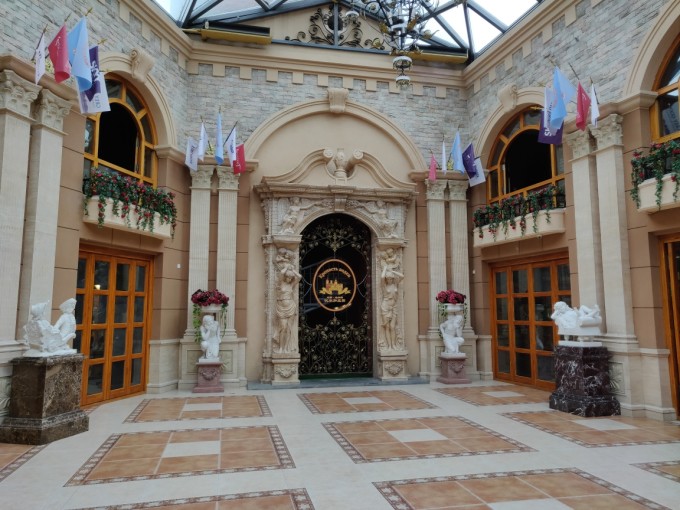 伏尔加庄园是 哈尔滨 一个4a级旅游景点,由于没在市区距离稍远,所以很多人都忽略了这个景点,其实还是很值得一去的,欣赏一下里面的城堡。交通方式有乘坐公交,打车等方式,乘坐公交需要倒车,时间稍微有些长,打车的费用有些高。还有一种方式就是团购门票和往返交通的套票,约130元。由于庄园尚属于私人庄园,所以除了1.2m以下小朋友免票外,别的没有免票,70岁以上老人和残疾人半价优惠75元。早上9:30从中央大街出发不堵车的话,一个小时多点就到了。到达景区,首先从游客中心进大门口是伏尔加宾馆,可以先解决一下内急,往前走是玛莎商品店,可以等回来时再买些小东西,不必走路时带着;接着走是米妮阿久尔中餐厅,想必大家早上吃的还没消化完,可以等到中午再来;再往前可以看到 俄罗斯 表演艺术中心,周一是没有表演的;接着走就来到伏尔加码头,可以乘船参观几个城堡的景色,景色拍照效果不错,船票30元,时间25分钟左右,还有快艇但不推荐乘坐(时间太快了,普通船的一半时间);乘船回到码头接着往前走,上桥左手可以看到空中花园,铺满了鲜花,甚为漂亮,沿着花园往上走来到 玛利亚 婚礼教堂,教堂和空中花园组合起来非常震撼(据说这里举行一次婚礼就得几十万,乖乖滴!),想要拍照的可不能错过,但是人也相当的多,就看你的摄影技术了;接着走到了柳德米拉广场“骑士之爱”,往前走是森林高尔夫,买了高尔夫票的可以进去玩,不过玩的人很少;接着来到查理津诺城堡,建筑也很不错,只是最近有什么中俄艺术表演正在搭建舞台,下一个景点是阿木尔城堡,距离稍远点,规模不是很大,从这里开始就往回走了。往回走首先来到彼得罗夫艺术馆,是这里的标志性建筑,里面有一些壁画,还有 俄罗斯 的古董可以鉴赏一下;往前走路过高尔夫俱乐部,没有几个人玩,小白桦餐厅在装修,旁边有几棵白桦树,接着走到达 圣尼古拉 教堂,旁边有一个花车可以拍照,然后来到 普希金 沙龙,继续走来到伏特加酒堡,在一层可以了解一下伏特加酒的历史,然后到地下一层可以凭门票和品酒卷领取一份小食品,喝的有饮料、红酒和伏特加,都是用冰冻的玻璃杯盛的,必须抓紧时间饮用,否则很快就融化了,伏特加是40°以上的烈酒,没有酒量的小心别喝醉了,这里推荐品尝一下红酒,味道很不错,一层可以买两瓶带回家,不过价格不菲,一百多一瓶;过了小桥来到三只熊乐园,小朋友最喜欢的地方,可以花100元给套娃绘画或者制作面包,套娃只是给最外层的套娃上色,半个小时手工做完后,可以带走,然后可以玩一下户外的滑梯等小孩的游艺;最后去商店买点纪念品,大约3:30从庄园出来,乘坐大巴返回中央大街不到5点,结束一天行程!(ps:酒店里面有最低消费,千万要注意)
