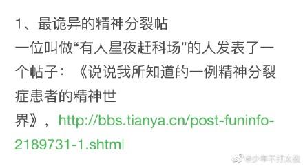发帖是是一个id叫做“有人星夜赶科场”的网友,帖子名字叫《说说我所知道的一例精神分裂症患者的精神世界。