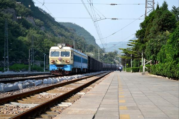 长城上俯视娘子关镇 ,刚好来了一辆火车,这边火车还是蛮多了,都是拉煤的