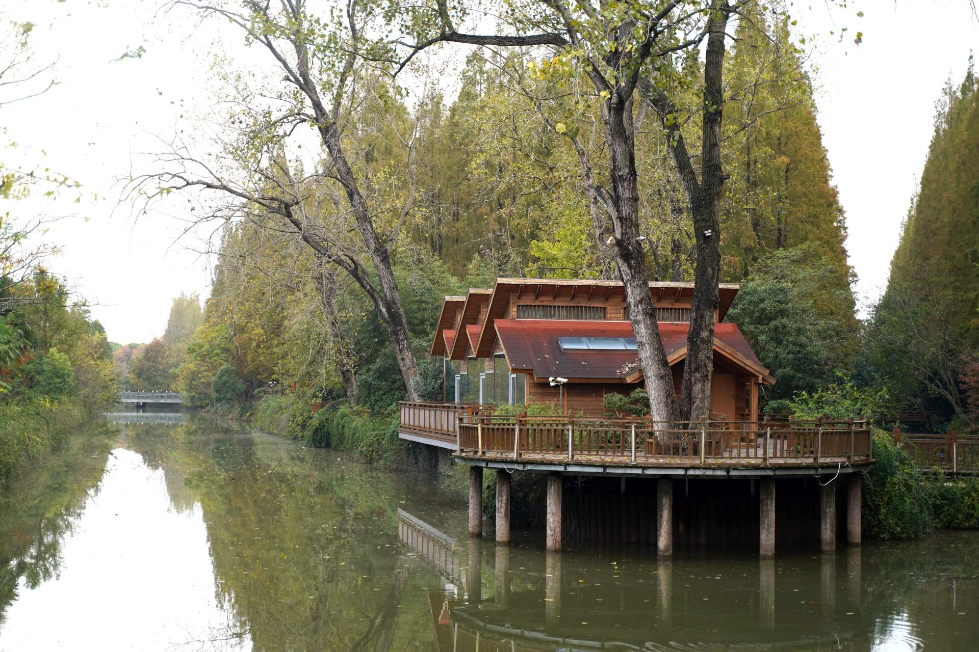 怡沁园就不多介绍了,就是一所很大的度假村酒店,和很多酒店密集的房间相比,怡沁园显得格外的空旷,里面的设施和建筑都是分散的很开,游客办理入住之后需要使用短驳车才能到房间,房间的类型也是很丰富,有湖景房,湿地房,小别墅群,品类还是蛮多的,我选择的应该是最便宜的森林氧吧房间,房间在森林里面一共三层,每层包含多个房间。